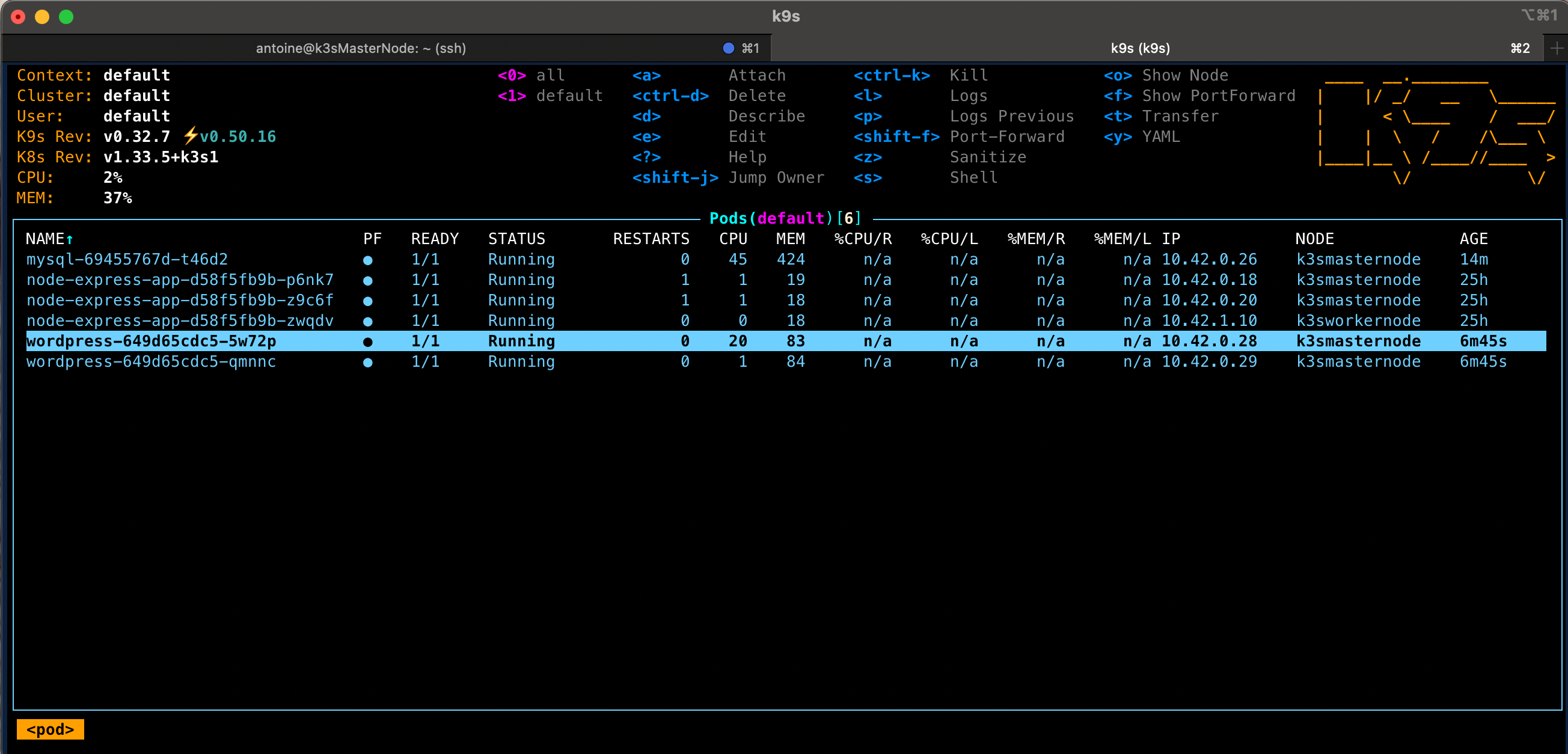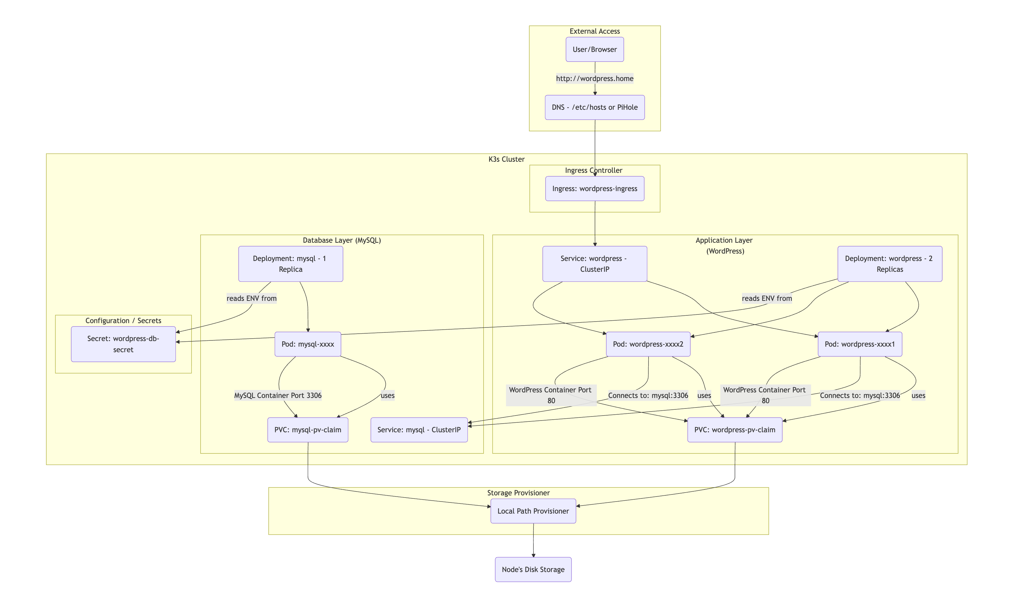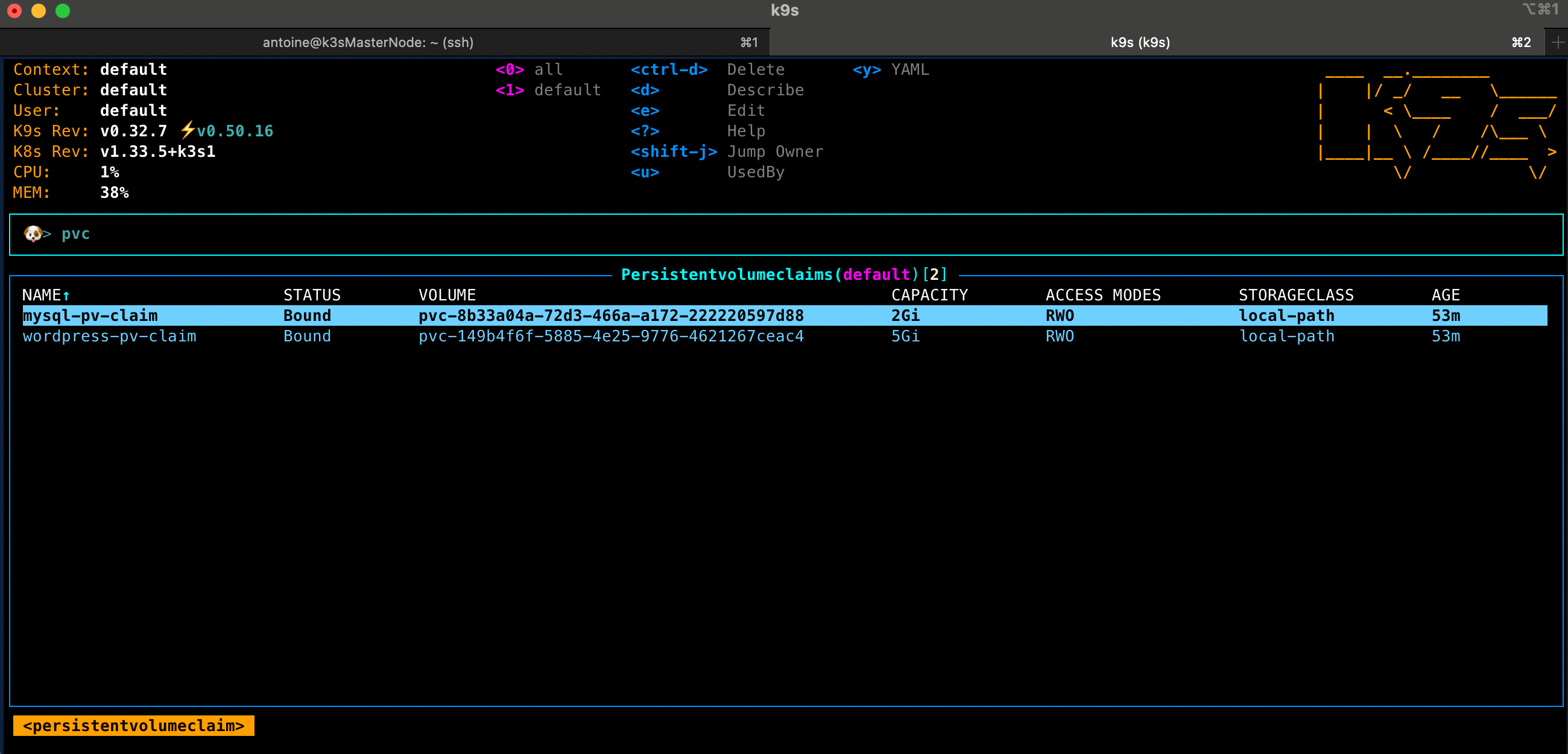 Our WordPress files will be saved in /var/lib/rancher/k3s/storage/ on one of your nodes (managed by the wordpress-pv-claim), and your database data will be in a similar location (managed by the mysql-pv-claim). They will both persist even if you delete or restart the Pods.