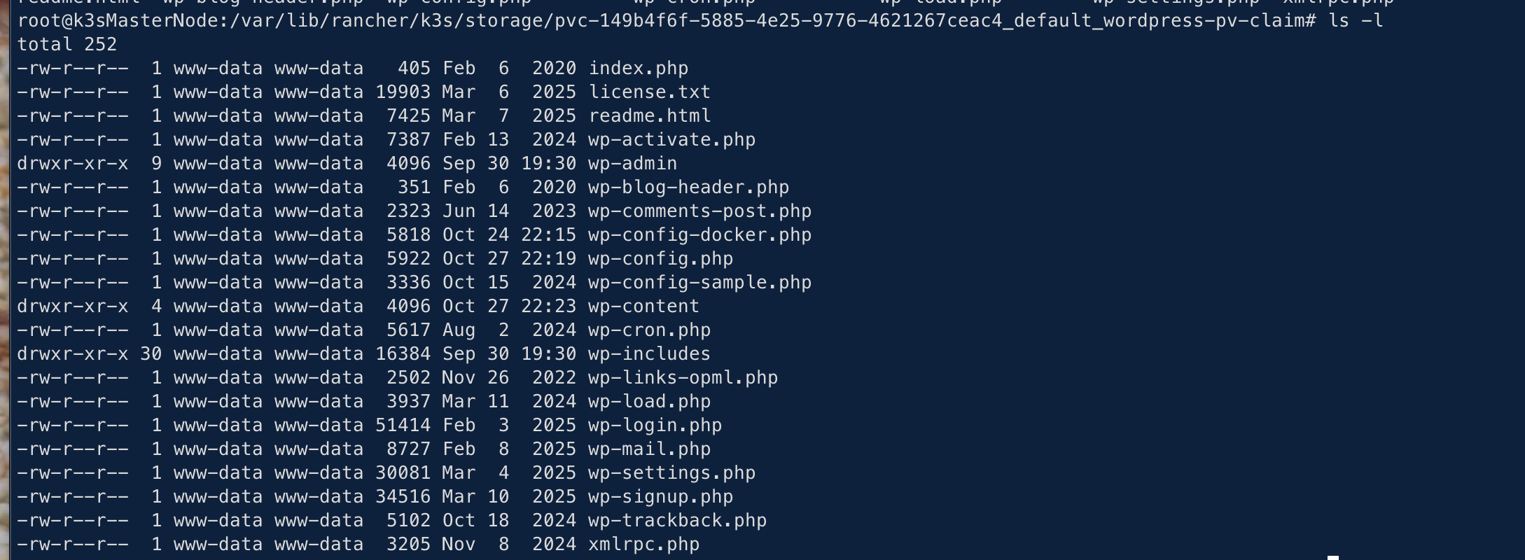 cd /var/lib/rancher/k3s/storage/pvc-149b4f6f-5885-4e25-9776-4621267ceac4_default_wordpress-pv-claim#