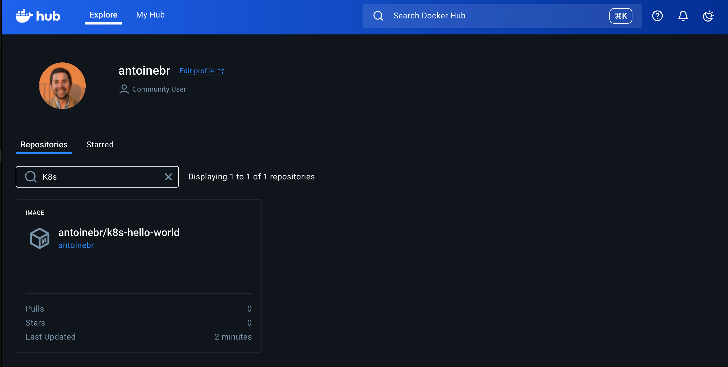 v1image (antoinebr/k8s-hello-world:v1) is now on Docker Hub.