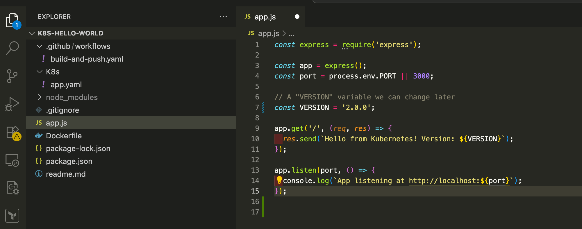 res.send(`Hello from Kubernetes! Version: ${VERSION}`);